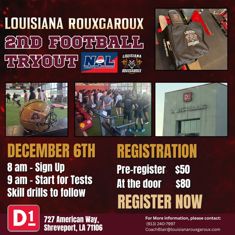 Players will need workout clothing, turf shoes or cleats depending on try-out location and a valid ID